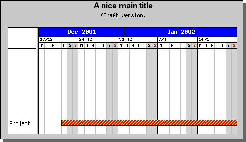 Using our previous example we will illustrate this parameter by changing the position of our 'Project' activity to position 7. Therefor we change the call to GanttBar() to