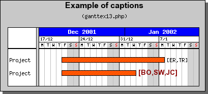 );are both ways of specifying the caption "[BS,ER]" for the activity. Since activity is a standard JpGraph text object you can easily modify font, color and size with calls to SetFont() and SetColor(), (e.g.